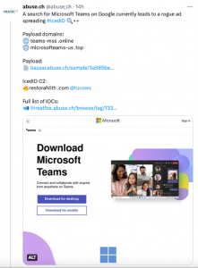 Over the past 24 hours, both Mozilla Thunderbird and Microsoft teams have been impersonated, with IcedID malware being delivered. It’s evident that despite usually focusing on malspam, the operators of IcedID have turned their attention(s) to malvertising.